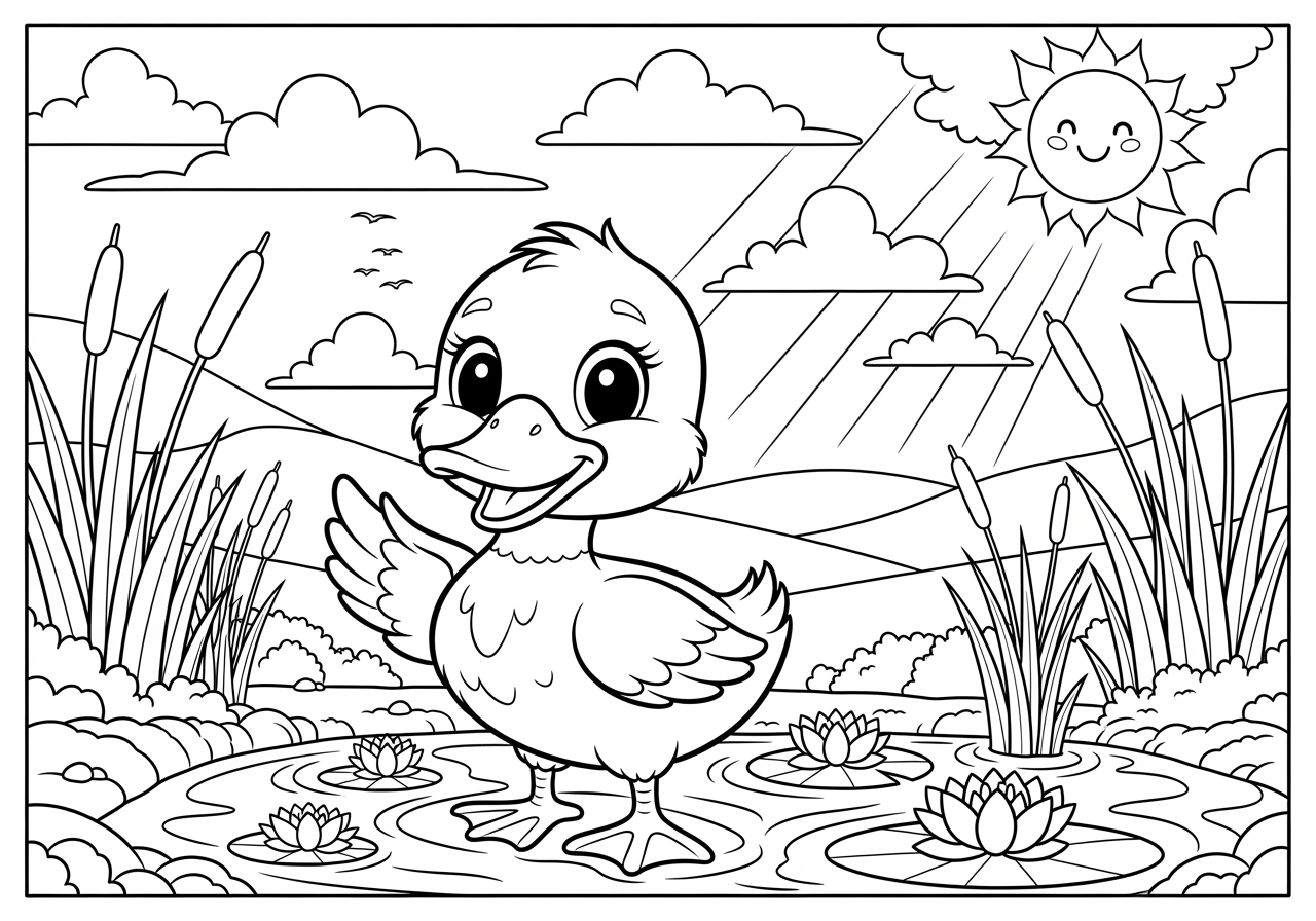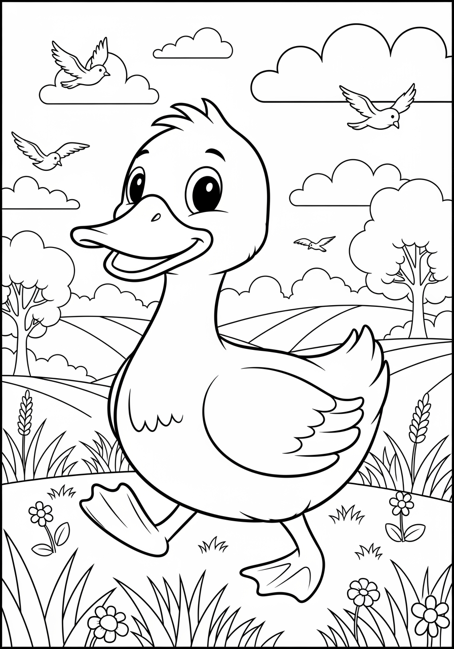 Our selection includes a diverse range of designs, from simple, easy-to-color outlines for younger kids to more detailed and intricate patterns for older children and adults. You can find ducks in natural settings, whimsical environments, and even seasonal themes. With varying difficulty levels, there's something to suit every artist's preference and skill level.