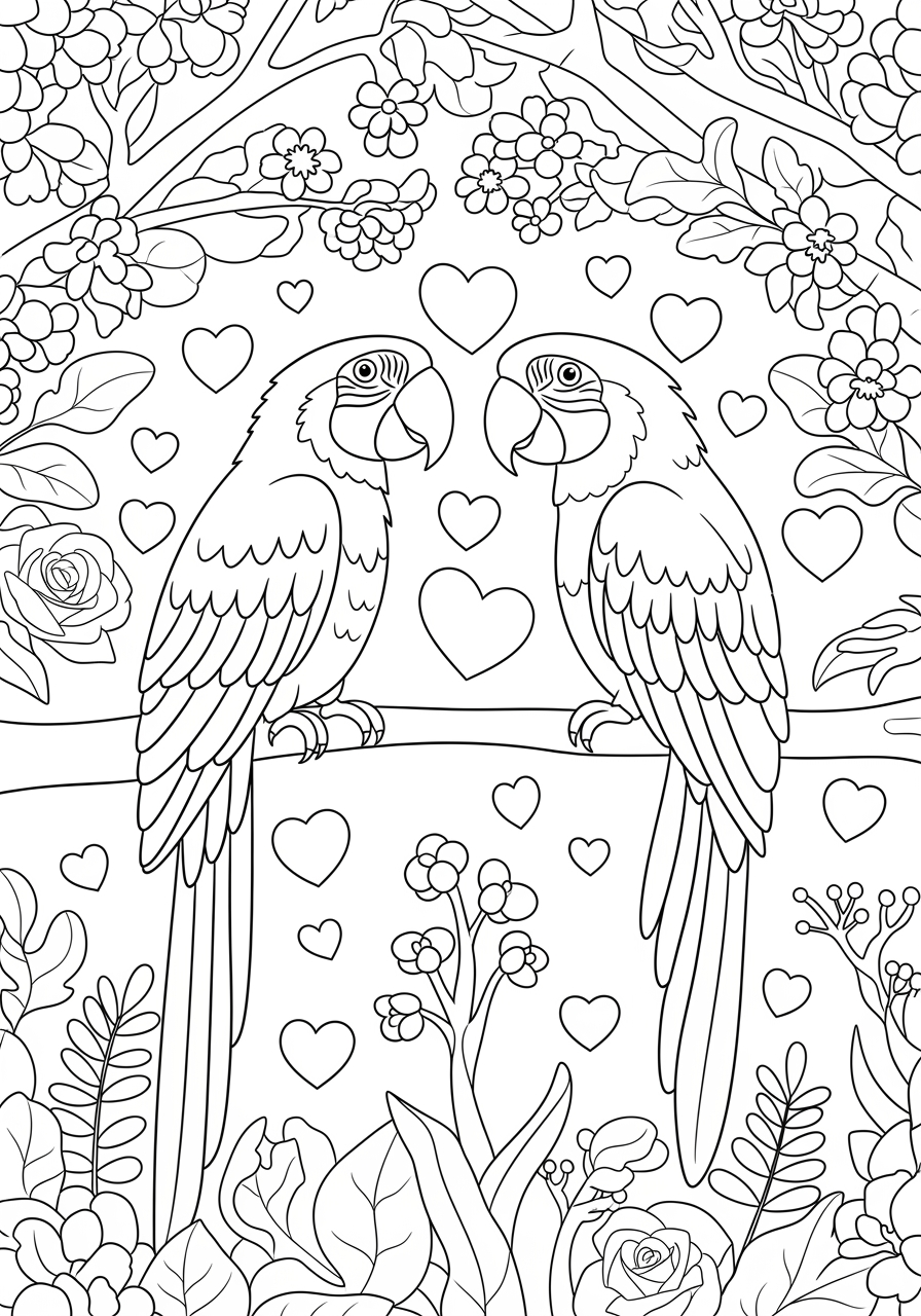 Cockatiel in a Valentine’s Day Setting Coloring Page