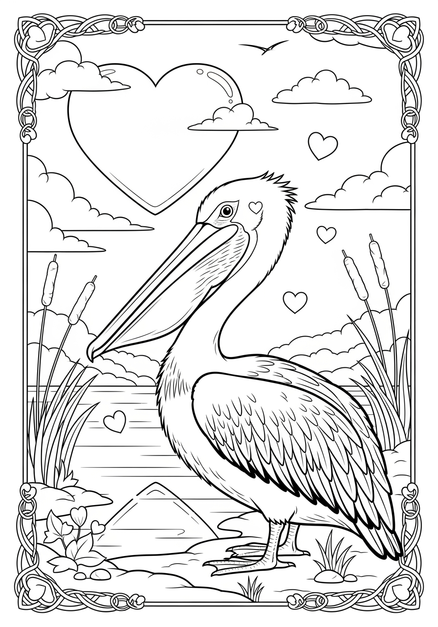 Valentine’s Cockatoo with Hearts Coloring Page