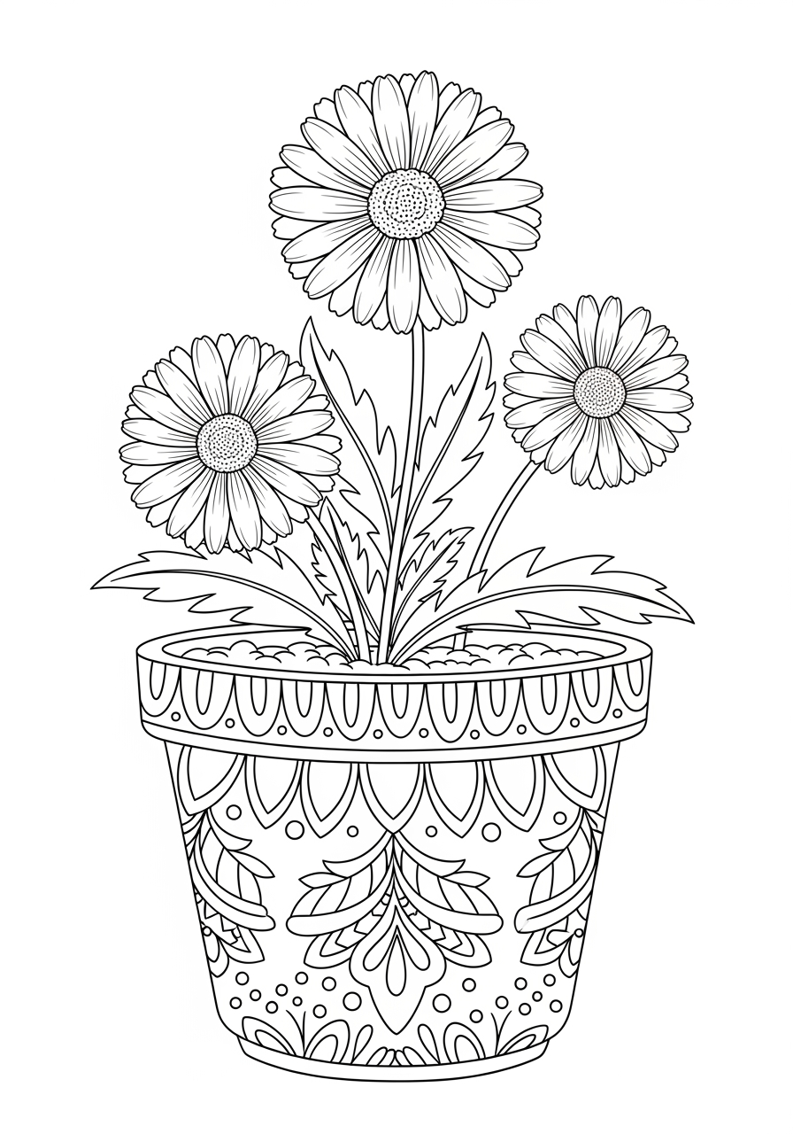 Daisy in a Pot Coloring Page