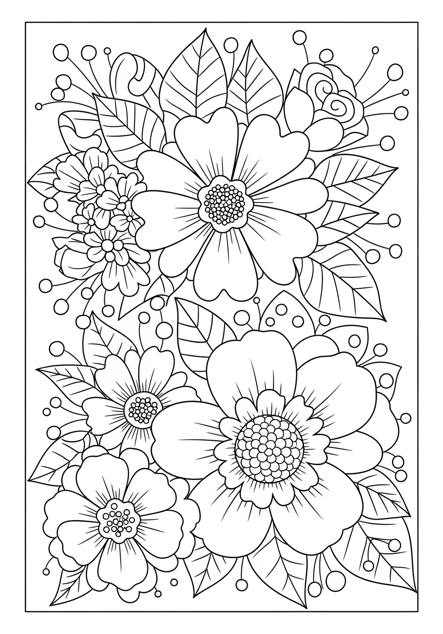 Black and White Coloring Page of Flowers