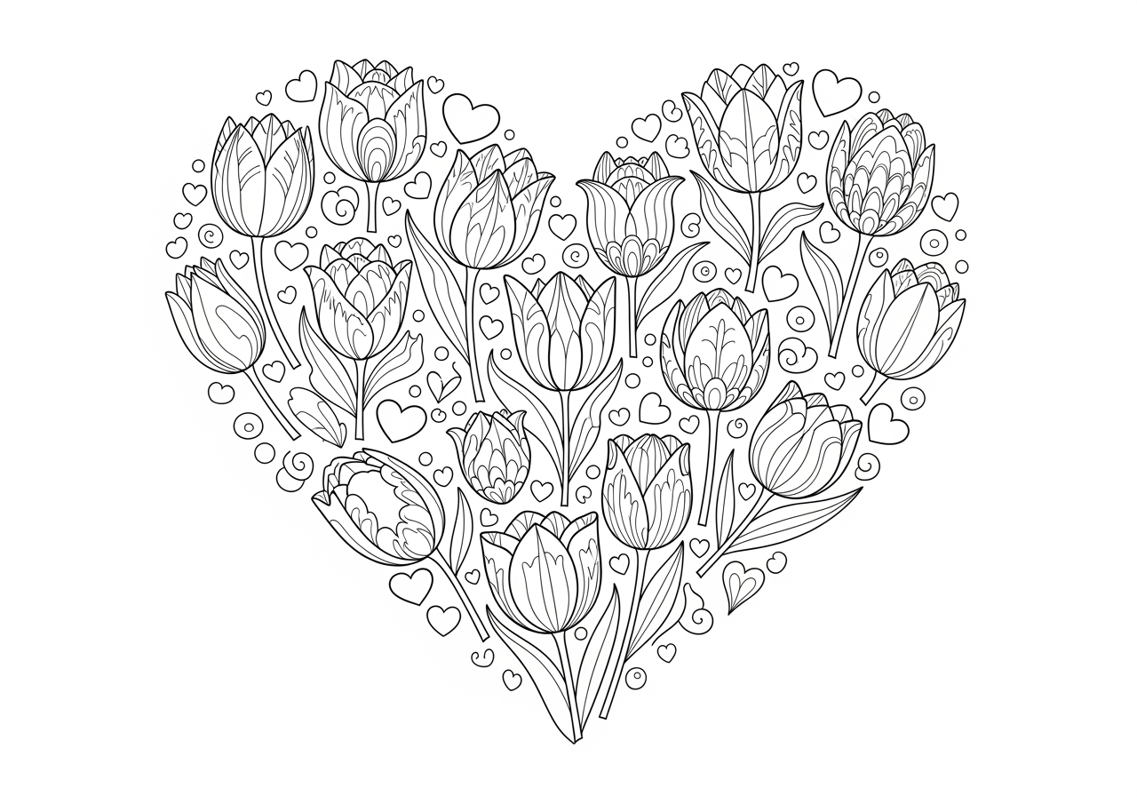 Dive into a world of creativity with our delightful coloring pages featuring flowers and hearts. Designed to captivate young minds, our "Heart and Flowers Integration" coloring page is a wonderful tool for encouraging creativity and improving fine motor skills. The black-and-white line art illustration features a beautifully ornate heart filled with an elaborate arrangement of flowers like roses, daisies, and cherry blossoms, all outlined with bold and smooth curves for easy coloring. This coloring page is perfect for home crafts, classrooms, or therapeutic activities, providing both relaxation and the joy of imagination. As children color, they can explore their artistic abilities while enjoying the calming effect of filling the page with vibrant hues. This page offers a unique bonding experience, creating joyful moments as kids and adults alike indulge in the art of coloring. Ideal for printable use, our coloring pages flowers and hearts collection, including heart flower coloring pages and flower heart coloring pages, offers a diverse range of designs that inspire creativity and bring a sense of accomplishment. Download our free printable hearts and flowers coloring pages today and give your child the gift of artistic exploration with pictures of hearts and flowers to color.