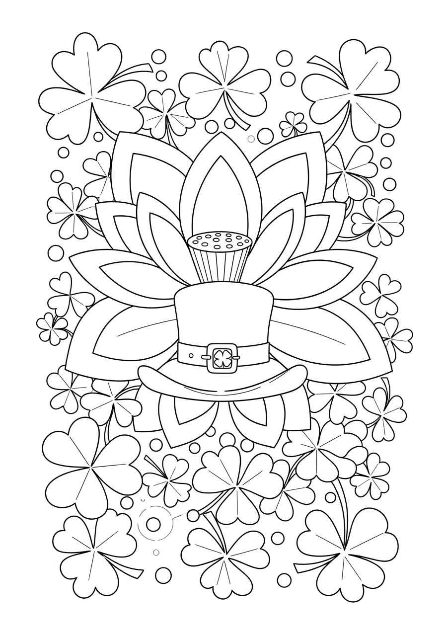 St. Patrick’s Day Lotus and Shamrock Coloring Page