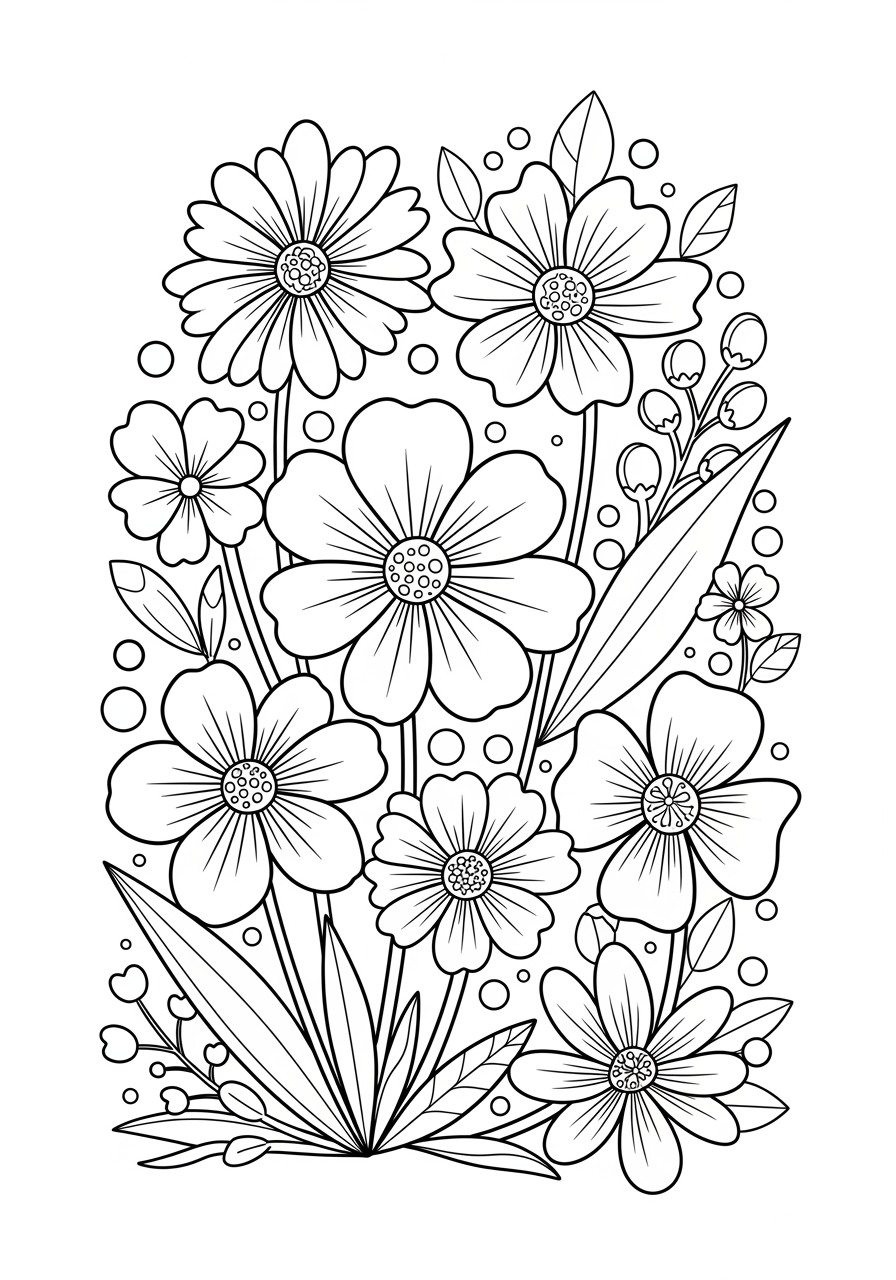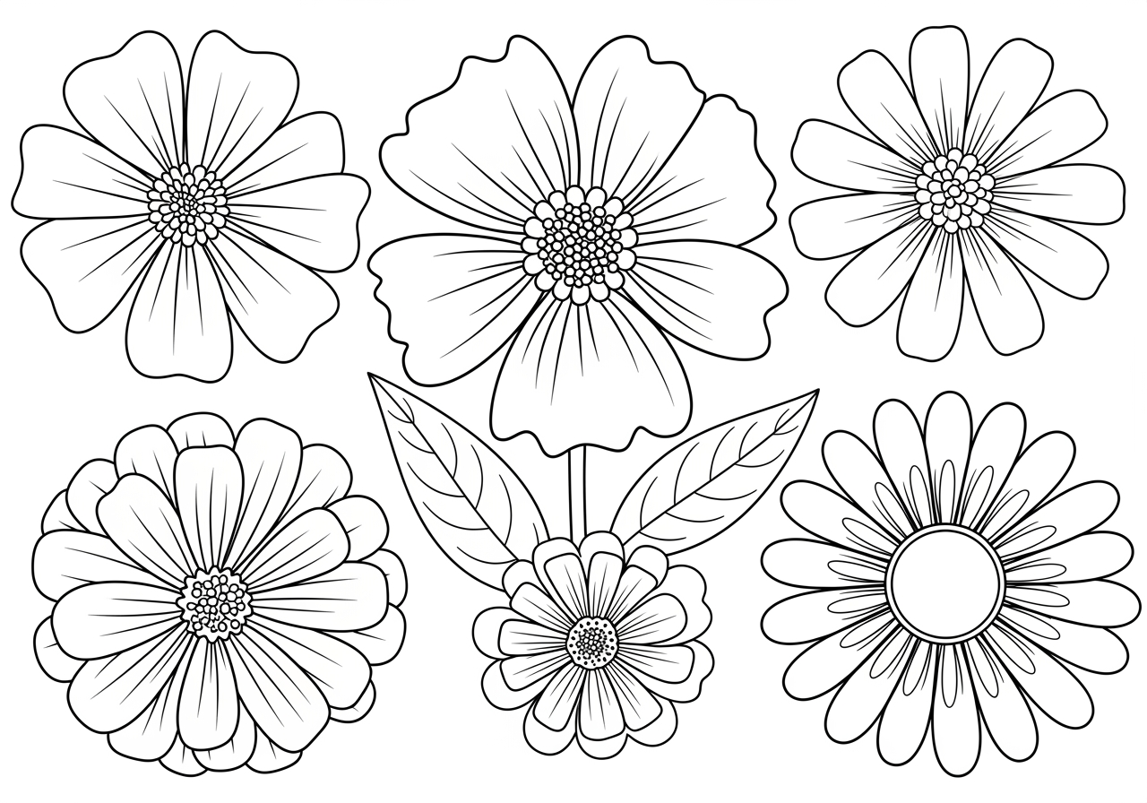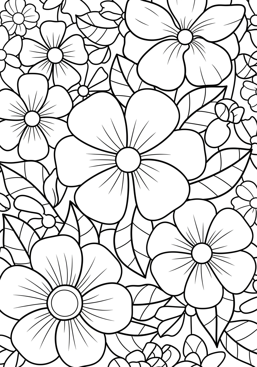 Engage your child's imagination and creativity with our unique flower coloring pages. These printable pages are designed to cater to young artists, featuring a large, stylized flower as the centerpiece. The surrounding elements include various flowers with distinct petal shapes, curling vines, and delicate leaves, all crafted with bold outlines to encourage easy coloring. These pages provide a perfect blend of detailed patterns and open spaces, allowing for colorful expression while enhancing fine motor skills. Ideal for classroom activities or a relaxing home craft, these coloring pages offer a delightful way to improve patience and foster a sense of accomplishment. The lively garden theme is further enriched with the addition of small butterflies and whimsical insects, sparking joy and imagination in every child. Download these unique flower coloring pages to inspire creativity and provide hours of entertainment and relaxation.