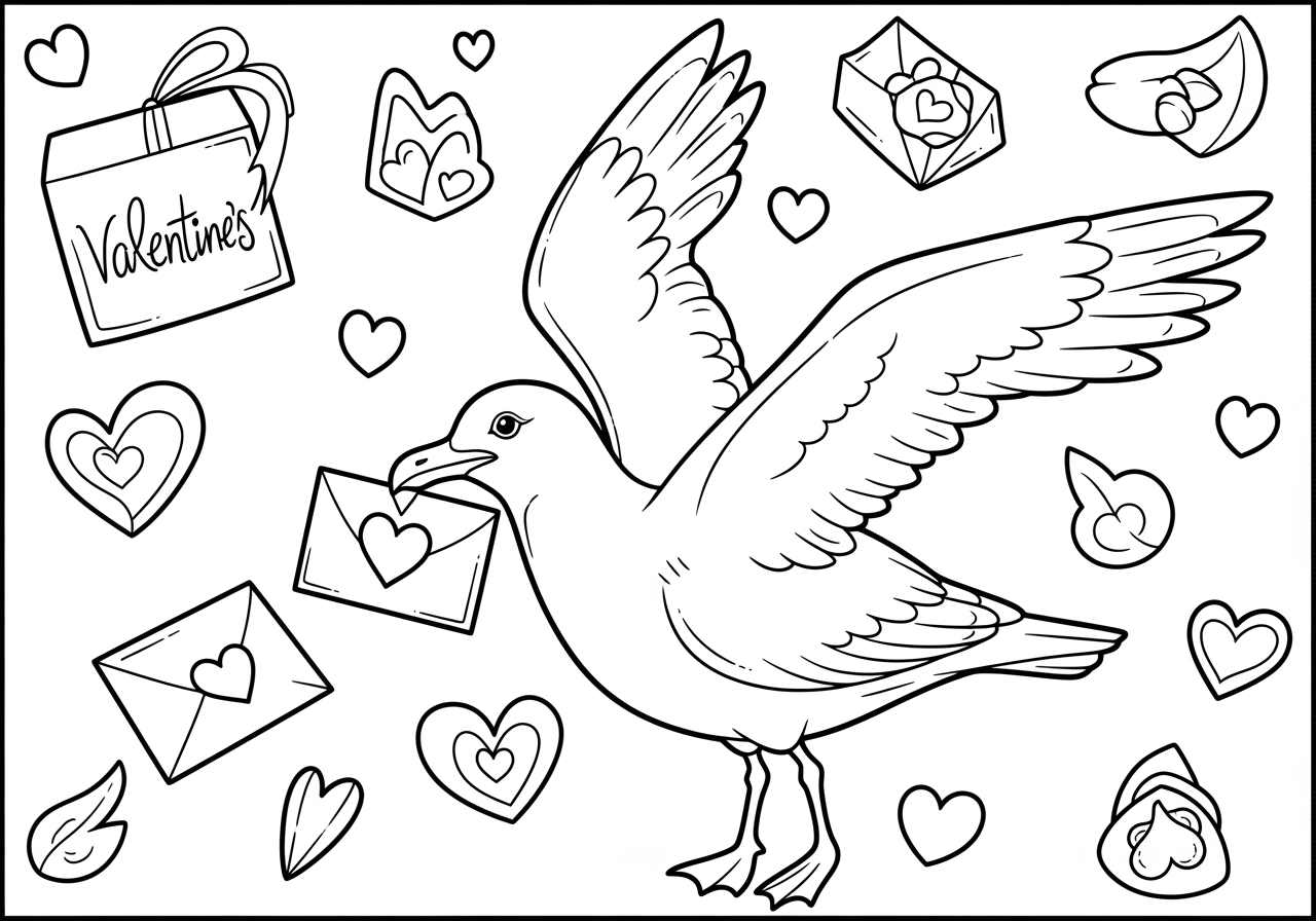 Delight young artists with our Valentine's Day goose with hearts coloring page, a perfect blend of whimsy and creativity. This charming page features a graceful goose as the central character, elegantly poised with flowing feathers that invite exploration through color. Encircling the goose are decorative hearts in various sizes, complemented by soft swirling patterns and leafy vines, adding an enchanting touch. Ideal for both home and classroom settings, this coloring page fosters creativity and fine motor skills in children, while offering moments of relaxation and patience. The bold outlines and simple shapes are designed for easy coloring, ensuring a sense of accomplishment and joy for your little ones. Perfect for Valentine's Day festivities or any day that calls for a bit of artistic fun, this coloring page is a delightful addition to your collection. Download and print this page to provide a bonding activity that sparks imagination and brings smiles to everyone involved.