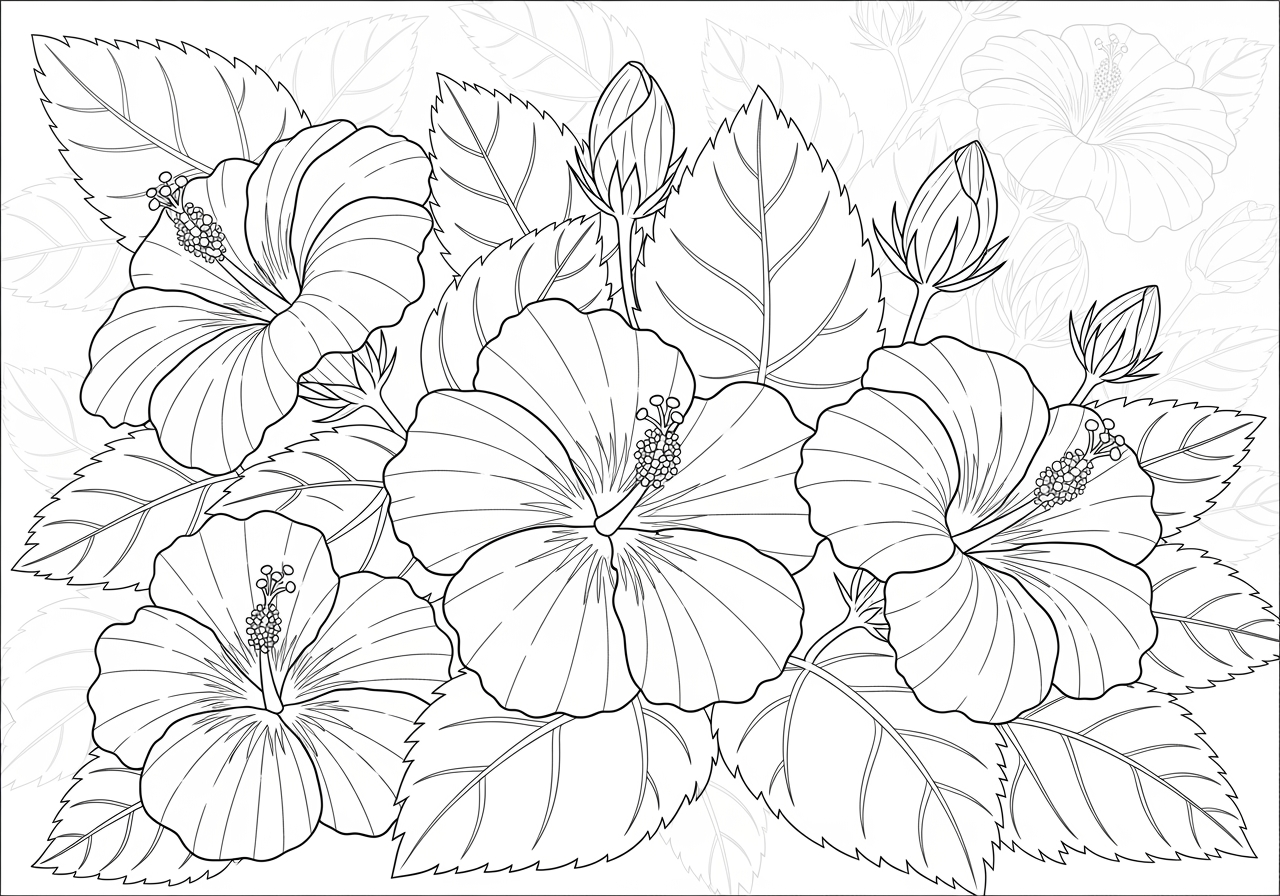 Grab your coloring tools and let your imagination take you on a colorful journey through the world of hibiscus! With each stroke, you'll bring these beautiful flowers to life, creating your own masterpiece.