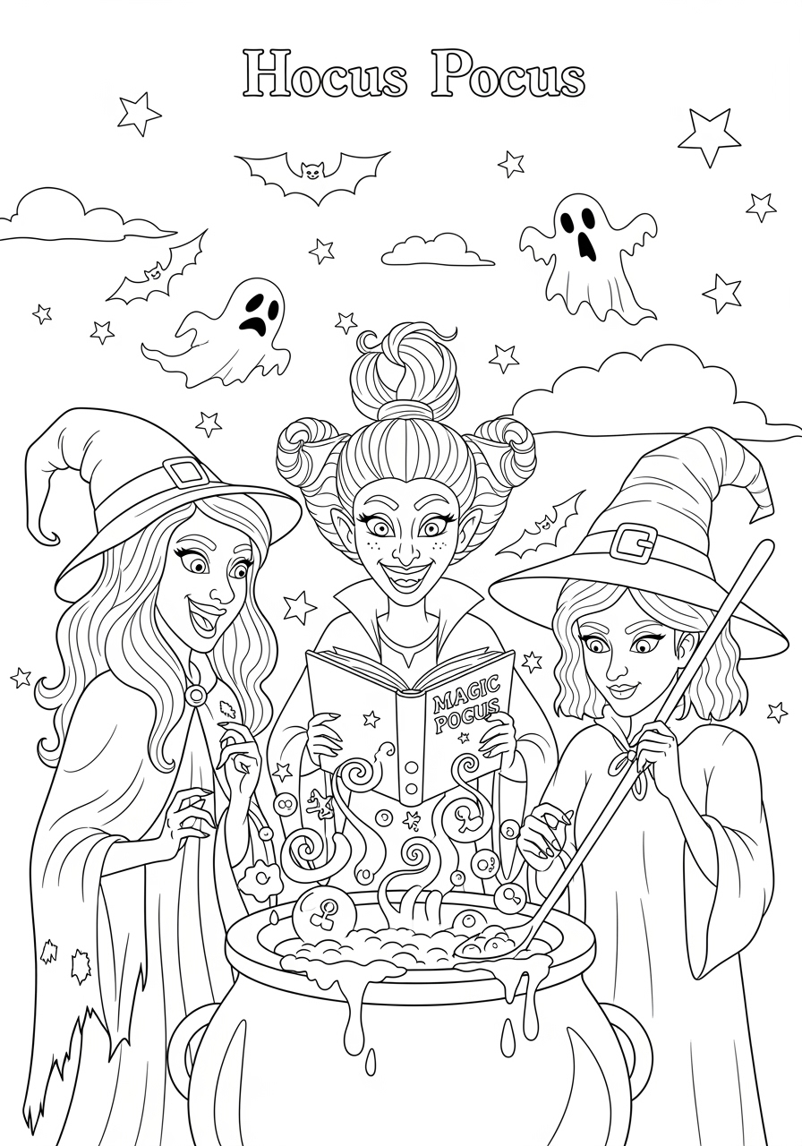 Unleash your child’s creativity with the enchanting “Hocus Pocus cauldron bubbling potion coloring p…