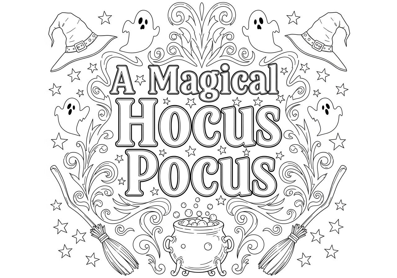 Discover the magical world of creativity with our “Hocus Pocus quote typography art coloring page.” …