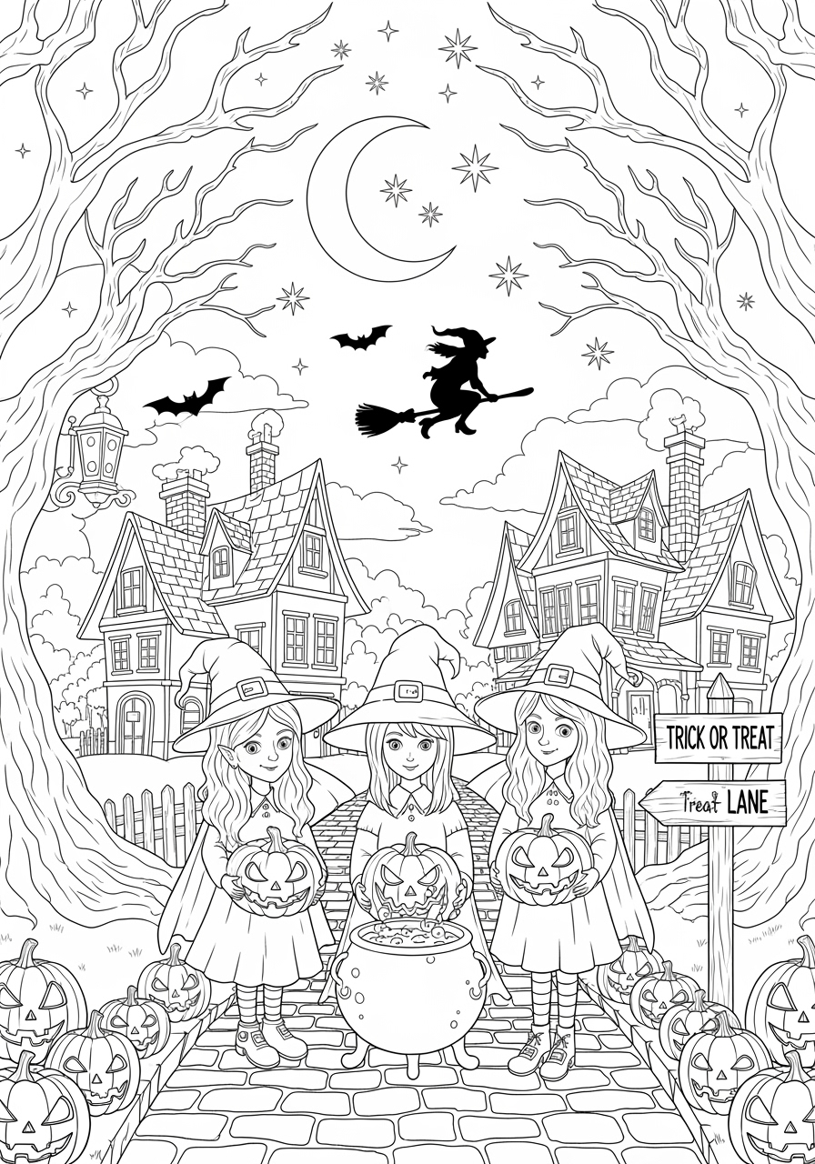Delight young artists with our “Hocus Pocus trick or treat street coloring page”! This printable is …