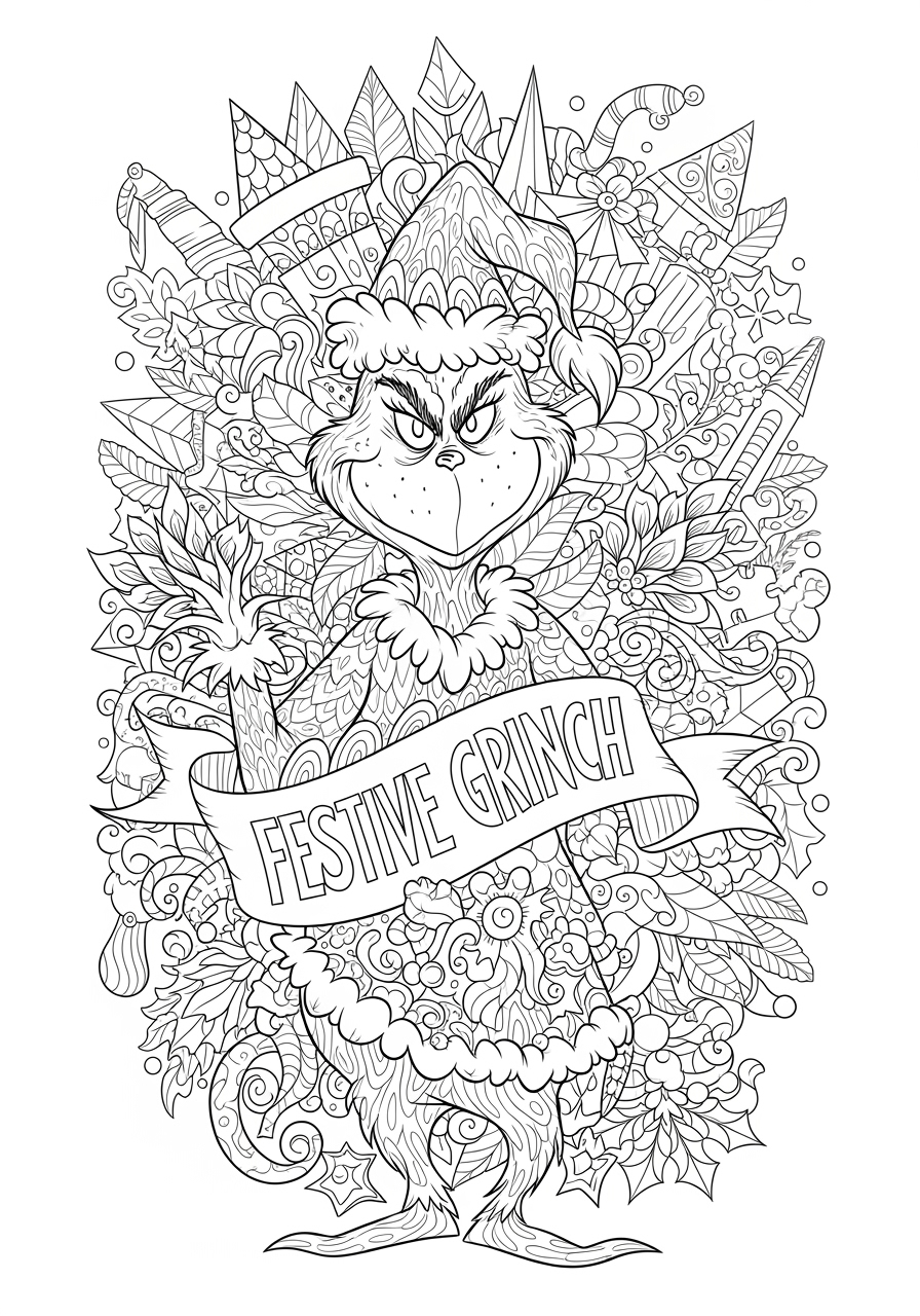 Experience the joy of the holiday season with our detailed nutcracker coloring page for adults. This intricate black-and-white line art illustration captures the festive spirit and is perfect for enhancing creativity and relaxation. Featuring a regal nutcracker soldier as the central figure, the page offers a sophisticated coloring experience with ornate details such as a decorated soldier uniform, a tall hat with a star, and a small wrapped gift. The background sets a cozy scene with festive curtains and beautifully adorned pine trees, while the foreground showcases a charming toy train weaving through stacks of gifts. The detailed ornaments, ribbons, and garlands add an extra layer of festive charm. Ideal for home crafts, classroom activities, or mindfulness exercises, this coloring page provides a delightful way to improve fine motor skills and patience. Download this printable masterpiece today and indulge in a therapeutic coloring experience that promises a sense of accomplishment and holiday joy.
