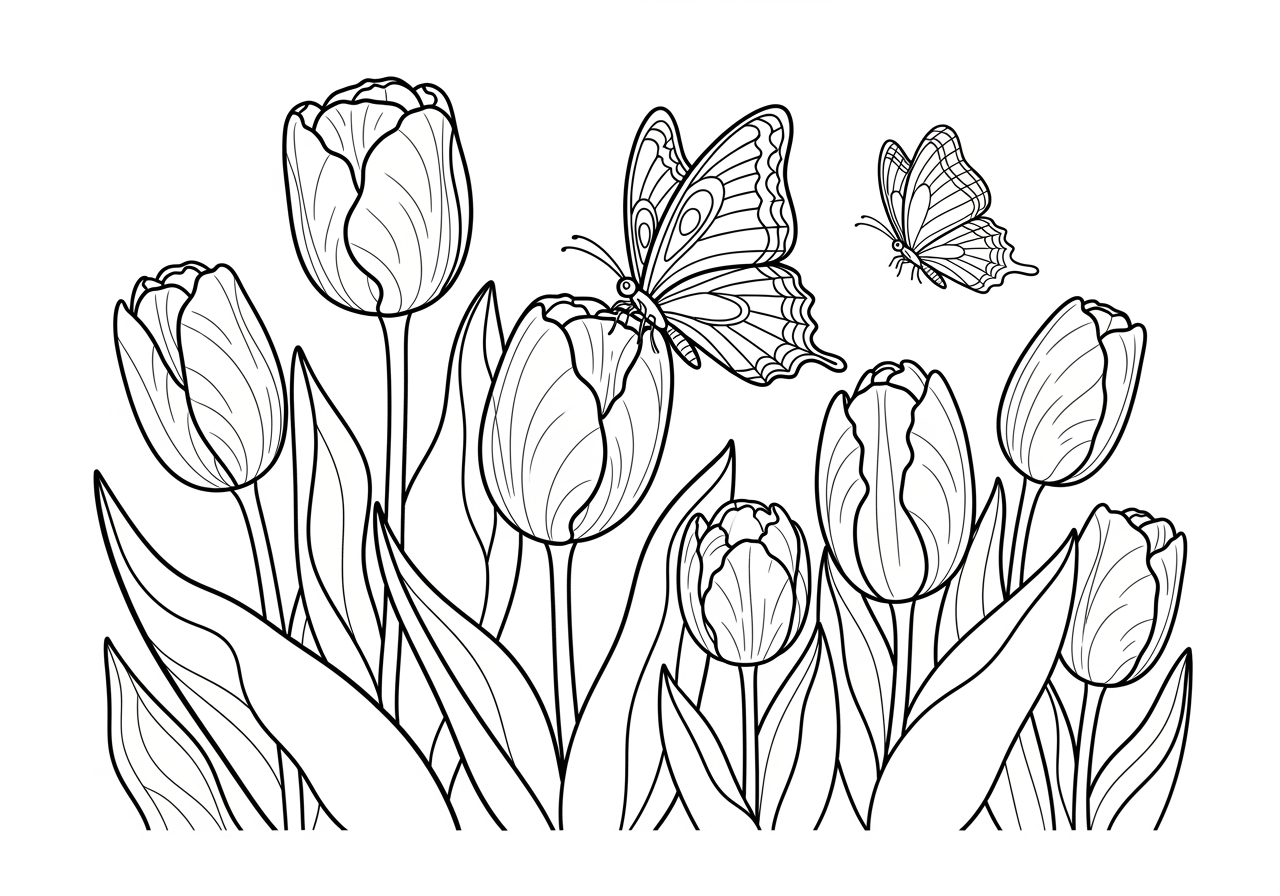 Introducing the Realistic Orchid Garden Coloring Page, a beautifully detailed black-and-white line art illustration perfect for children and adults alike. This coloring page showcases a vibrant and lush orchid garden, featuring a variety of orchids such as Phalaenopsis and Cattleya in full bloom. The composition includes multiple orchid stems adorned with large, intricate flowers and broad leaves, creating a captivating garden setting. The main flower cluster at the center boasts multiple blossoms with realistic textures and vein patterns, varying from fully bloomed flowers to budding ones. Against a soft, leafy background, gently arching orchid stems add depth, while ornamental butterflies flutter around, bringing a playful touch to the scene. This coloring page not only provides an enjoyable artistic activity but also helps children enhance their creativity, fine motor skills, and patience. Ideal for classroom use, home crafts, or relaxation during travel, the Realistic Orchid Garden Coloring Page offers joy and bonding time, sparking imagination and a sense of accomplishment. Download and print this page for a delightful coloring experience that brings the beauty of nature to life.