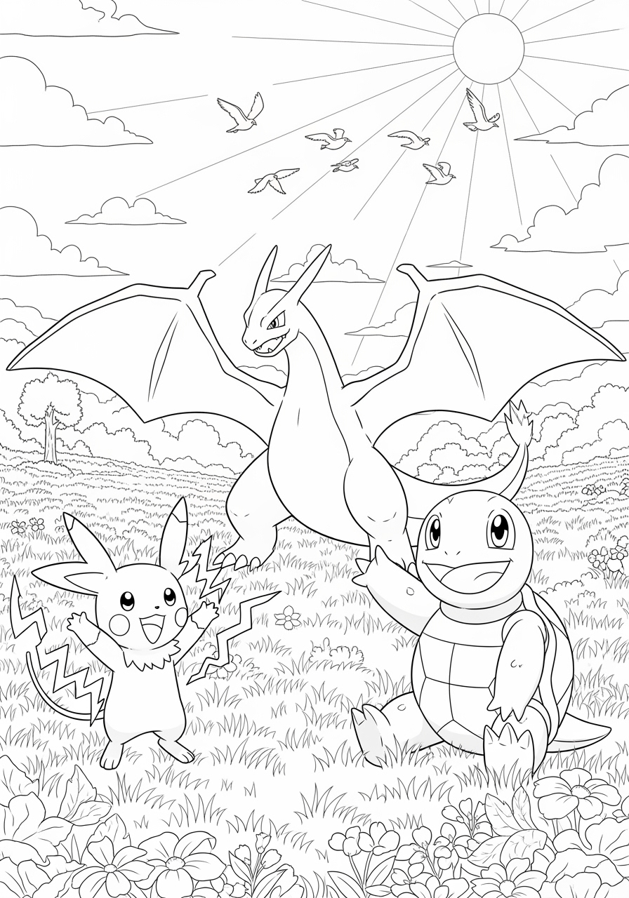 Welcome to our vibrant collection of Pokemon coloring pages, where fans of all ages can dive into the exciting world of Pokemon! Whether you're a kid, teen, or a lifelong fan of these iconic creatures, you're sure to find something that sparks your imagination. Our selection features everyone's favorite Pokemon, from Pikachu to Charizard, and includes scenes from epic battles to serene landscapes. Best of all, every page is free to download and print, making it easy for you to enjoy endless coloring fun!