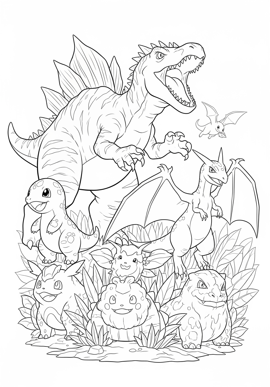 Dinosaur Pokémon Coloring Page to Print Out and Color