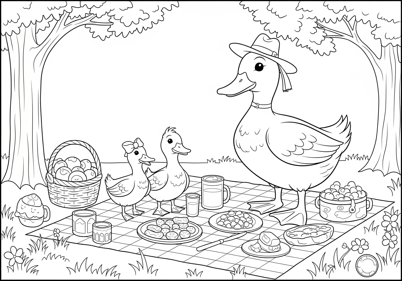 Duck Family Picnic Coloring Page