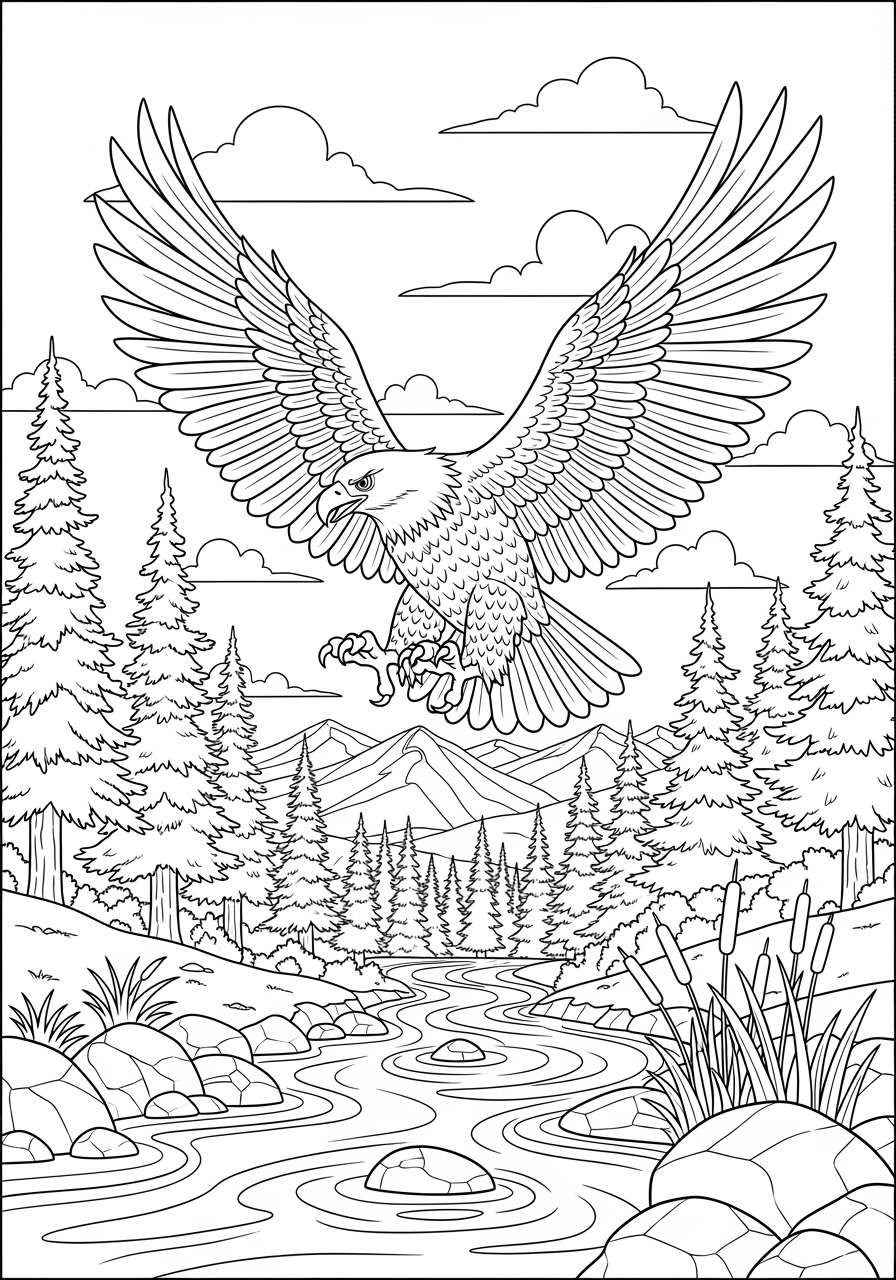 Eagle in a Forest Coloring Page