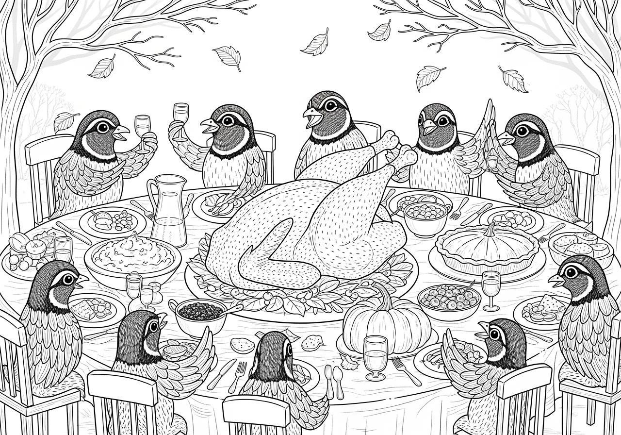 Quail Celebrating Thanksgiving Coloring Page