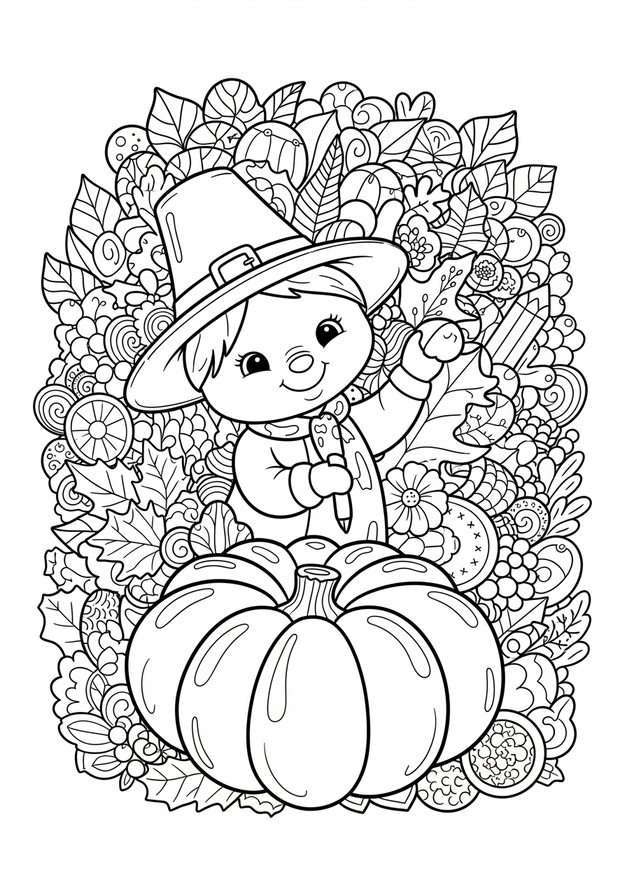 Explore the creative world with our hard Thanksgiving coloring page, designed for advanced coloring enthusiasts. This intricate black-and-white illustration features a majestic turkey with a grand tail, adorned with detailed geometric patterns and unique motifs. Surrounding the turkey are classic harvest elements—pumpkins, leaves, corncobs, and acorns—each with its own complex line art patterns. Perfect for developing fine motor skills and patience, this coloring page can be a delightful activity for children and adults alike. Whether used in the classroom, at home, or on the go, it offers a chance for relaxation and mindfulness. The festive theme of Thanksgiving brings joy and a sense of accomplishment as you bring the page to life with colors. Download and print this page for a creative bonding time with family and friends.
