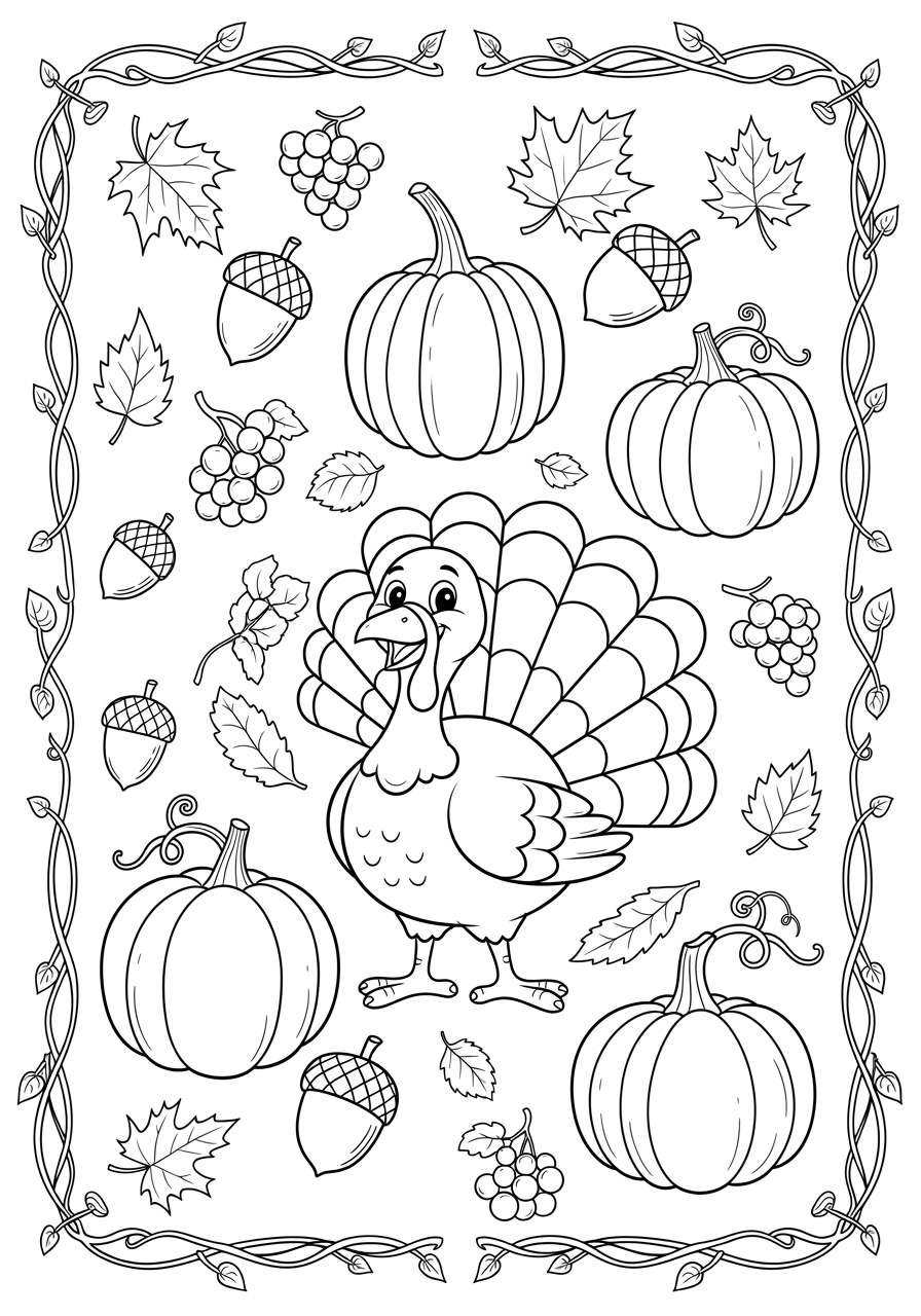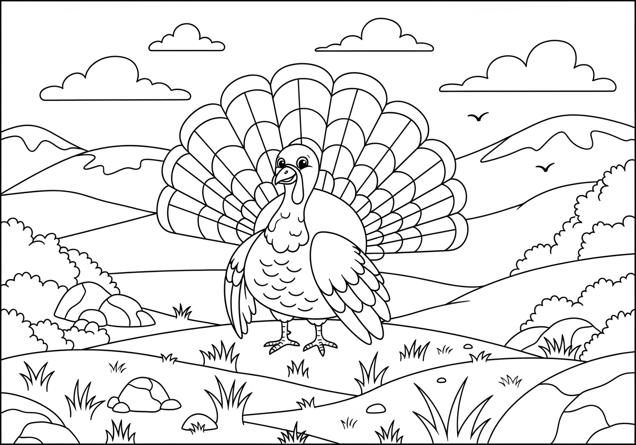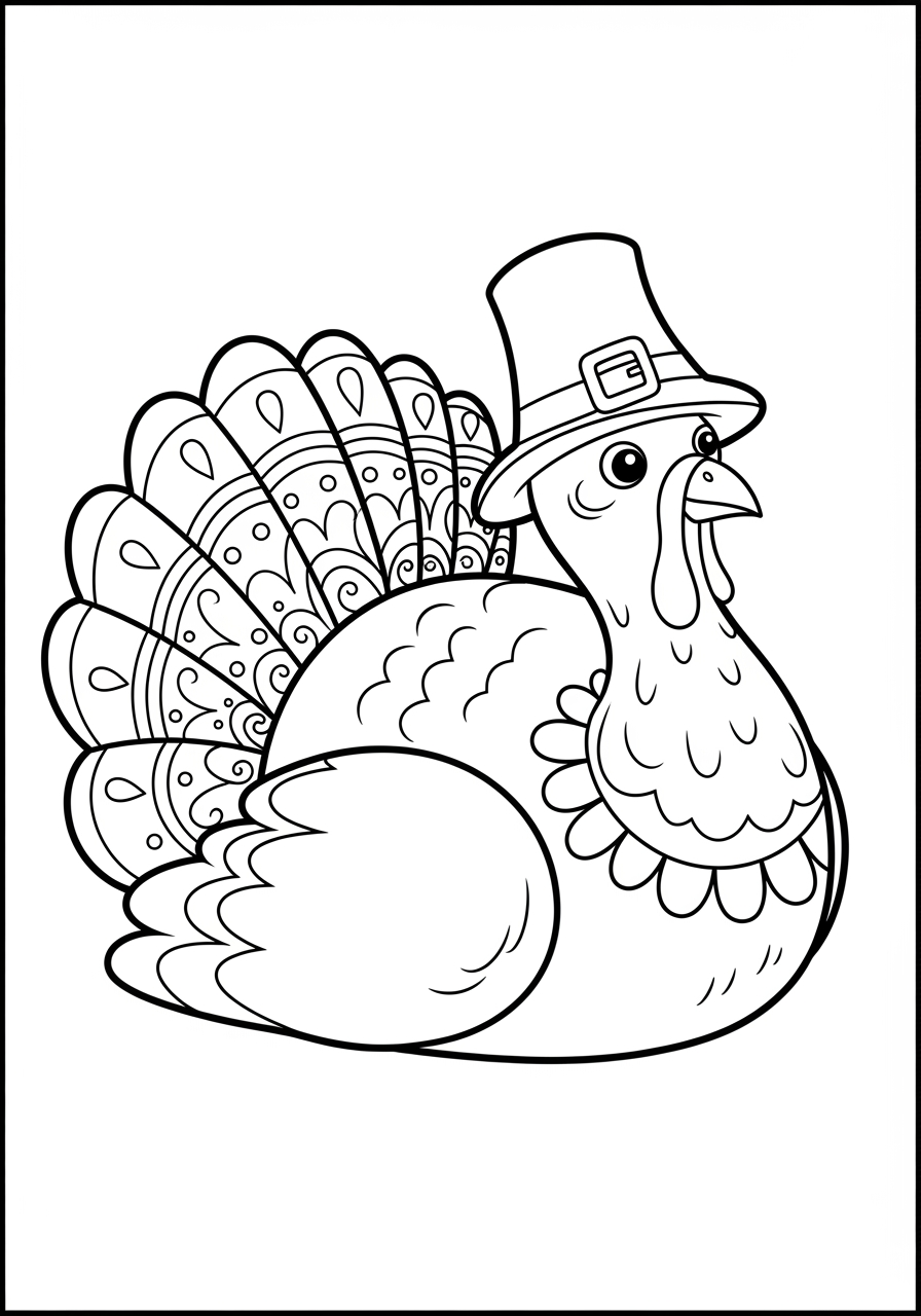 Introduce your little ones to the festive spirit with our charming turkey coloring pic. This delightful illustration features a friendly turkey with a rounded body and plentiful, layered feathers, standing proudly at the center of the page. The design is rendered in crisp black and white line art, making it an ideal activity for developing fine motor skills and encouraging creativity. Perfect for classroom use, home crafts, or even a calming travel activity, this coloring page invites children to explore their imagination and enjoy some mindful coloring time.