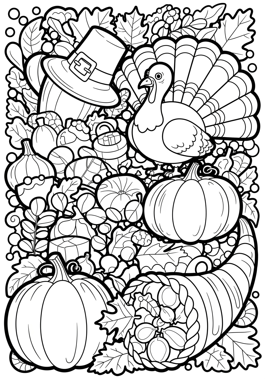Unleash your child's creativity with our delightful Turkey Trouble Coloring Page. This engaging line art illustration features a turkey in disguise, complete with large, expressive eyes and a playful, cartoonish appearance. Its feathers are whimsically styled to resemble various objects, sparking imagination and laughter. The scene is enriched with charming elements like hovering bees, fluttering butterflies, and scattered flowers, all framed by a playful border with decorative motifs. Ideal for classroom activities, home crafts, or travel entertainment, this coloring page not only promises fun but also helps develop fine motor skills, patience, and relaxation. As children bring this turkey to life with vibrant colors, they experience joy and a sense of accomplishment, making it a perfect bonding activity for families and educators alike. Download our turkey trouble coloring page now and watch your little ones immerse themselves in a world of creativity and fun.